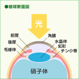 網膜は、眼の奥にある厚さ約0.1~0.4ミリの薄い膜です。ものを見る重要な部分で、10層に分かれています。内側の9層は神経網膜といい、外側の1層は網膜色素上皮細胞(もうまくしきそじょうひさいぼう)といいます。神経網膜には光を感じる細胞が並んでいます。